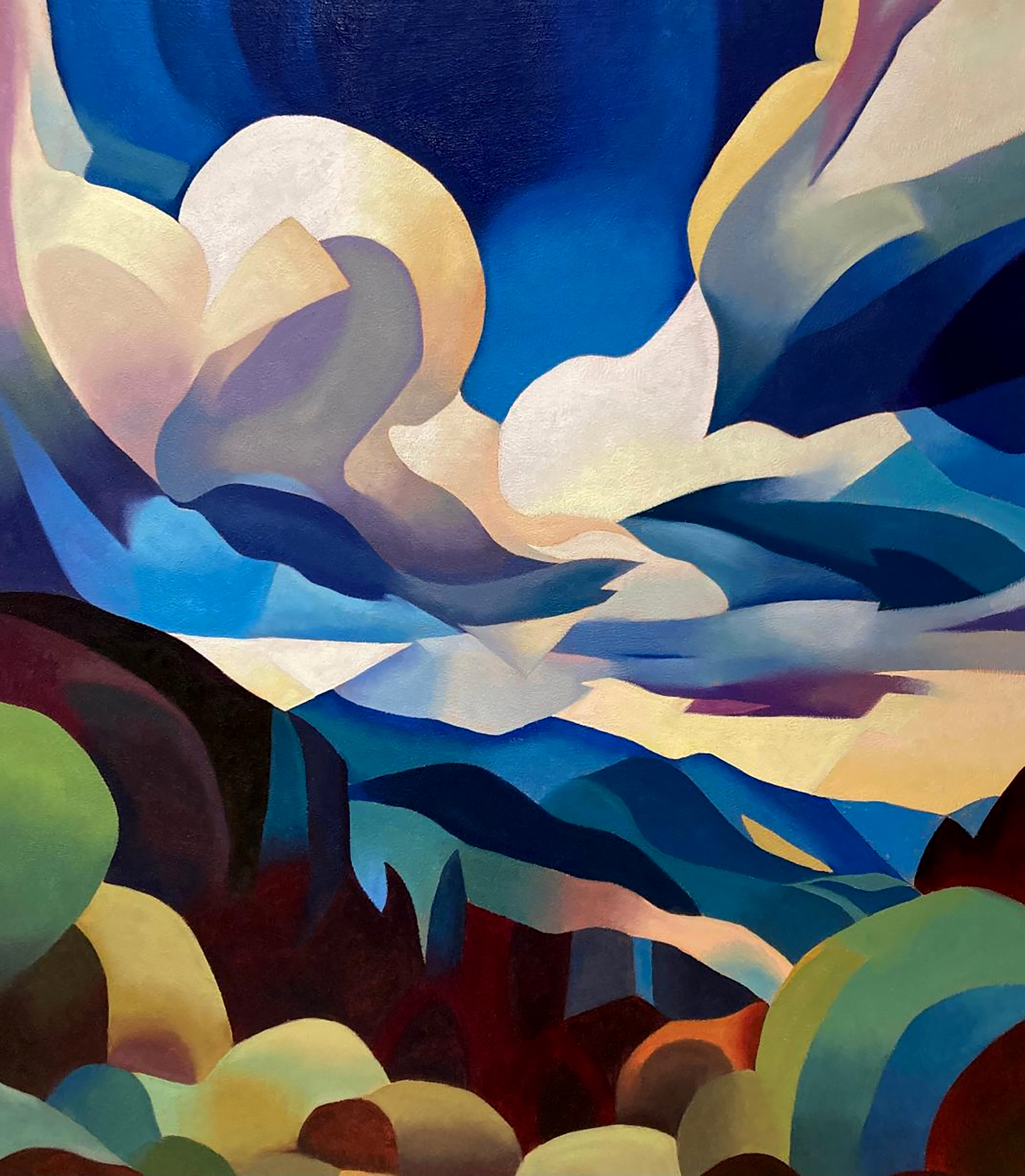 This body of work revisits the language of early modernist painting through today's digital tools. Each image began as a digital construction, some modeled in 3D software, others generated with Al. Each digital reference became the basis for a traditional oil painting.
