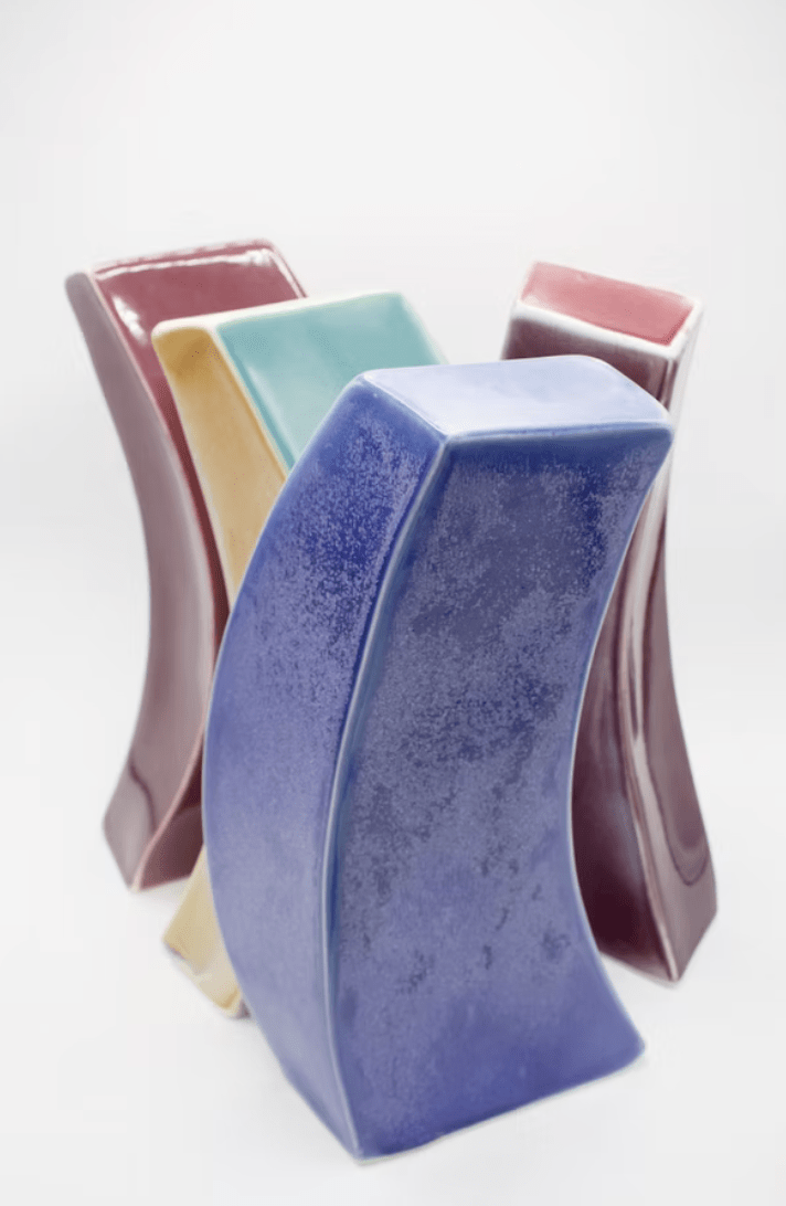 Your ceramic pieces have bold, curved shapes. and vivid colors. Can you share with us your artistic and creative process?
