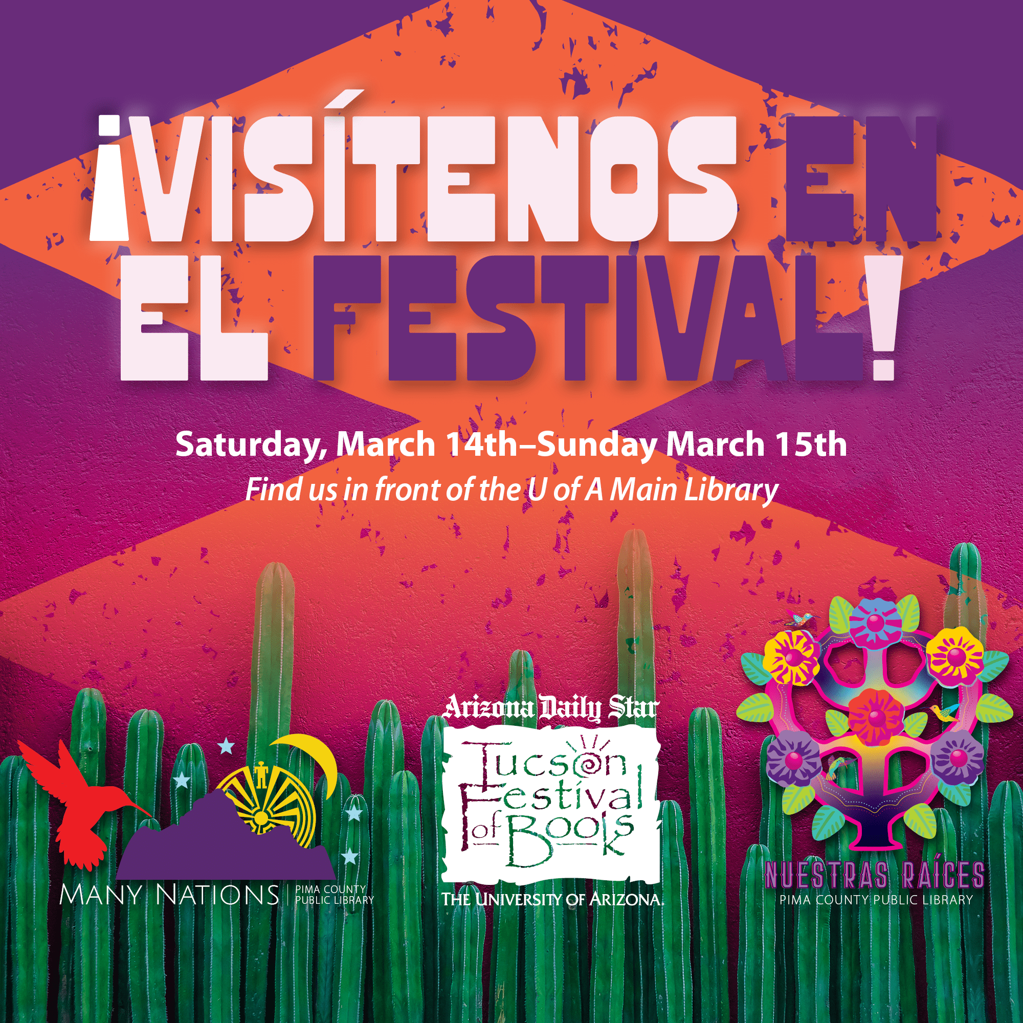 (Tucson, AZ) It's almost time for the 2026 Tucson Festival of Books (Saturday, March 14 - Sunday, March 15) and the Library has some great panels lined up at its Nuestras Raíces tent in front of the University of Arizona Main Library.